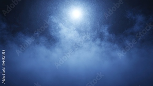 Fog and smoke blend seamlessly in a surreal dance, illuminated by soft light, forming abstract shapes on a plain background. A mysterious atmosphere.