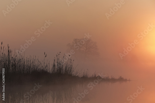 landscape, ukraine, fog, foggy, lake, moon, morning, spring, sunrise, water, reed, tree, sun, orange, nobody, fishing, hunting, lifestyle, blur, backlight, silhouette, europa, backlit