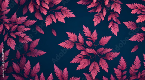 Foliage Leaves Background Botanical Flowers with copy space An Artistic Creation of Exotic Leaves in Warm Summery Colors Through Generative AI