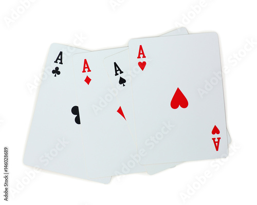 four aces poker playing cards isolated on white background