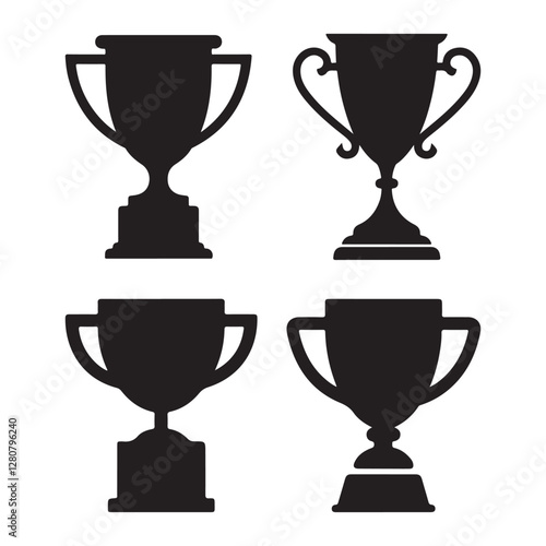 Four Simple Black Trophy Icons silhouette for Award Winning Designs