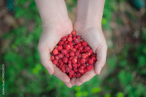 strawberry, soft fruit, hand, fruit, fruit, red, red, forest, collection, crop, nature, artless, berry