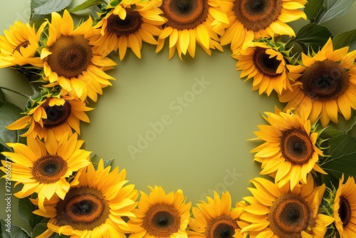Frame made of beautiful sunflowers on green background, with space for text concept of Mother Day, Women Day