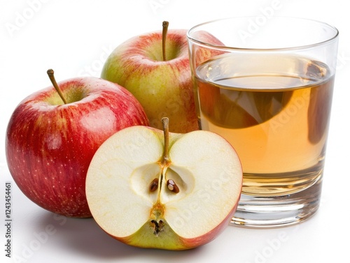 Fresh apples and apple juice in clear glass.