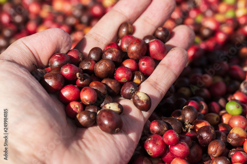 Fresh Arabica coffee berries . Organic coffee farm