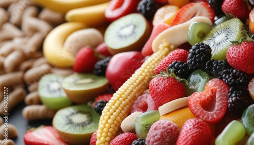 fresh fruit, vegetable, healthy eating, strawberry, kiwi, banana, corn, blackberry, raspberry, natural food, fresh produce, food photography, healthy lifestyle
