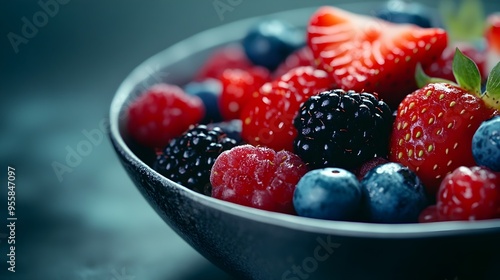 berry, fruit, healthy, organic, fresh, bowl, blueberry, blackberry, strawberry, red, blue, green, nourishment, diet, food, nature, harvest, sweet, ripe, tasty, gathered, closeup, background, studio, indoor, table, copy space, detail, texture, wood, rustic, natural, arrangement, still life, lifestyle, dessert, snack, breakfast, brunch