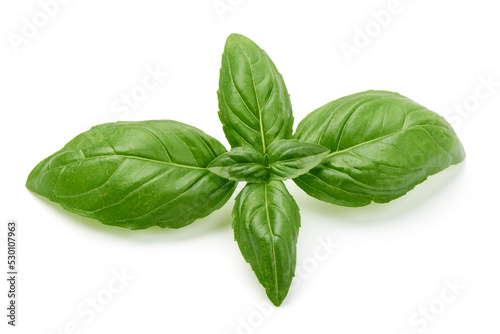 Fresh basil leaf isolated on white background, close up. Basil herb.