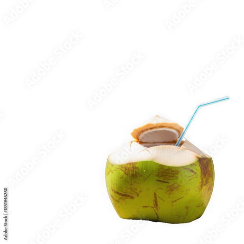 coconut, fresh, drink, straw, tropical, fruit, transparent, background, summer, hydratation, natural, healthy