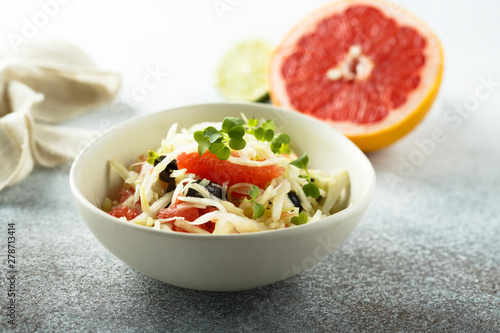 Fresh grapefruit salad with olives