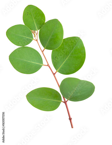 Fresh green eucalyptus branch with round leaves, vibrant foliage, and natural stem on transparent background