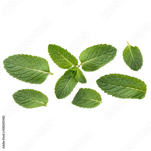 Fresh Mint Leaves Arrangement isolate on transparent background cutout, PNG file, Cutout file