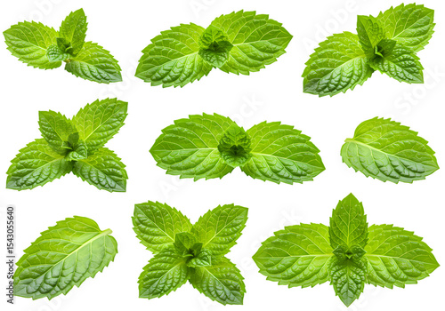 Fresh Mint Sprigs: Culinary Herb Collection for Recipes and Design on transparent background
