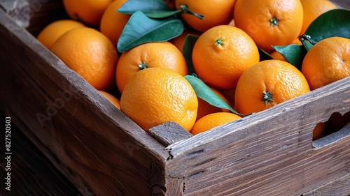 fresh oranges in a wooden box in the gardens. selective focus. Generative AI,