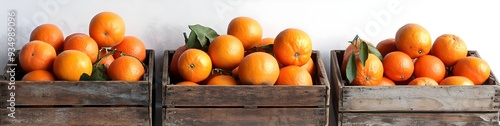 orange, orange, citrous, fruit, fruit, fresh, ripe, juicy, wooden crate, crate, wooden box, box, rustic, vintage, natural, healthy, vitamin c, breakfast, snack, food, produce, market, grocery, store, farm, agriculture, harvest, still life, macro, closeup, texture, background, white background, isolated, colours, vibrant, bright, yellow, green