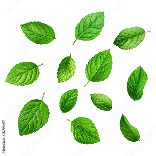 Fresh Organic Mint Leaves with Rich Green Texture on a Transparent Background, isolated on transparent background.