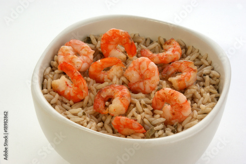 fresh organic prawns with rice in a bowl