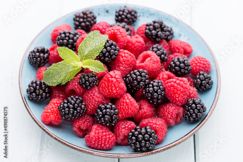 raspberry, berry, food, fresh, mint, fruit, strawberry, vitamin, dessert, salad, plate, flat, lay, blueberry, berry, red, blackberry, raspberry, vegan