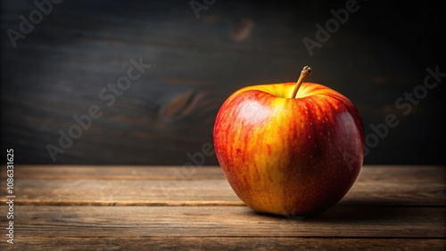 apple, red, yellow, lone, simplicity, freshness, natural, organic, healthy, juicy, vibrant, fruit, raw, delicious, wooden, background, rustic, single, stem