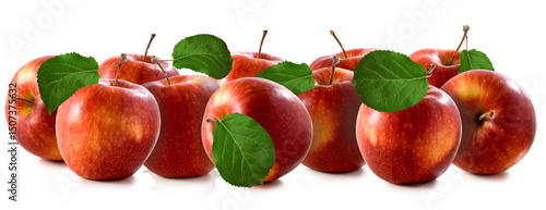 Fresh red apples with green leaves arranged beautifully, perfect for autumn harvest or home decor