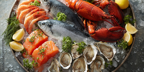 seafood, fresh, ice, market, fish, lobster, oyster, shrimp, display, cold, eatery, epicure, ingredient, cooking, selection, quality, crustacean, seafood, chef