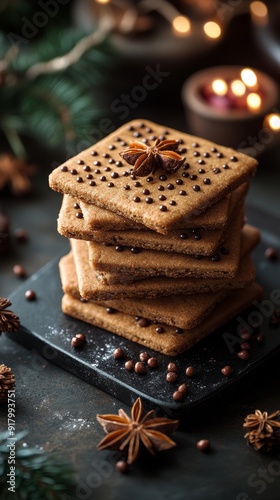 Freshly Baked Christmas Cookies on a Black Tray, Holiday Baking Generative AI