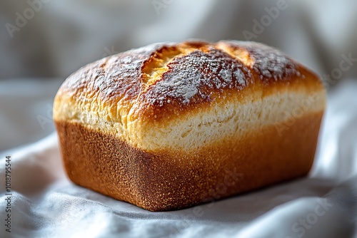 Freshly baked loaf of bread on a white cloth
