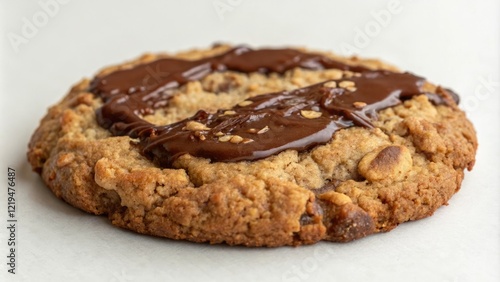 Freshly baked oatmeal cookie with melted chocolate and crunchy edges, hot from the oven, crispy edges, comfort food, baked treats, warm cookies