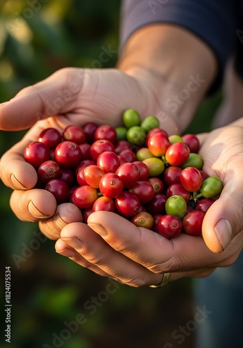 hot drink, cherry, harvest, hand, fresh, ripe, agriculture, crop, farm, red, green, bean, plant, organic, natural, food, drink, raw, fruit, tropical, cultivation, farming, closeup, holding, berry, produce, ingredient, caffeine, beverage, healthy, nourishment, macro, detail, colours, vibrant, growth, rural, countryside, plantation, picking, collecting, product, market, trade, export, import, supply, demand, industry