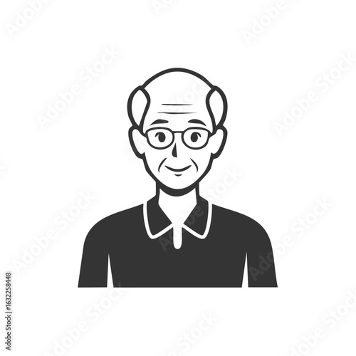 Friendly elderly man portrait with glasses simple black and white vector icon