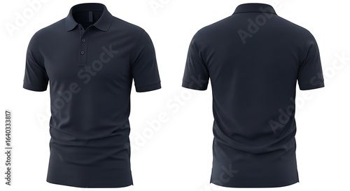 Front and Back View of Men’s Plain Navy Blue Polo Shirt Mockup on White Background
