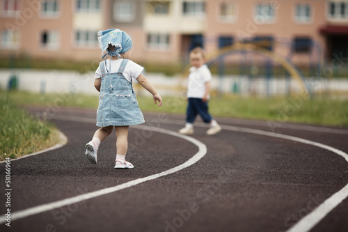 funny children playing on stadium