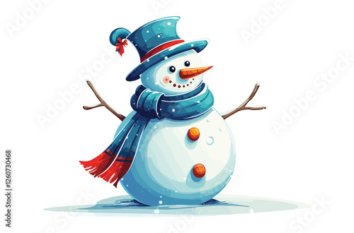 snowman, winter, snow, hat, foulard, snowflake, festive, decoration, blue, illustration, vector, snowy, day, cold, cute, christmas, holiday, chilly, sparkling, joyful, fun, snow-covered, cheerful, winter storm, snowfall, glacé, holiday season, cold weather, cosy, winter landscape, christmas decoration, icy, happy, seasons greetings, snowfall