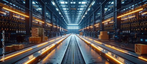 Futuristic and highly efficient industrial warehouse facility with advanced logistics and manufacturing equipment Showcasing a modern and well organized interior design with automated systems