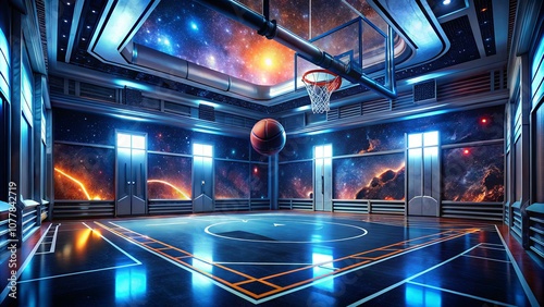 basketball, court, space, galaxy, star, interior, sport, shooting, hoop, ball, game, floor, cosmic, vibrant, energy, blue, exercise, universe, modern, design, futuristic, structure, wall, technology, fantasy, scene, indoor, arena, light, creative, activity, performance, entertainment, play, training, motion, atmosphere, artwork, colourful, dynamic, gravity, surreal, innovation, competition, skill, excitement, dream, recreation