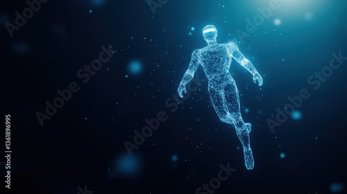 digital, human, futuristic, virtual, technology, innovation, blue, particle, glowing, motion, hologram, anatomy, abstract, design, cybernetic, figure, light, energy, network, electromagnetic, movement, shape, silhouette, body, three-dimensional, realism, science fiction, graphic, datum, visualisation, interaction, creativity, science, modern, transformation, simulation, artistic, representation, concept, education, research, humanism, intelligence, development, exploration, imagination, aesthetic
