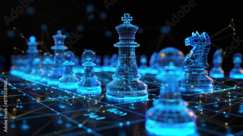 chess, holographic, digital, strategy, futuristic, chessboard, game, technology, neon, glow, innovation, cyber, chess piece, king, board game, aglow, tech, glowing, competition, intelligence, modern, abstract, visualisation, illuminated, tactical, grid, creativity, generative, ai, interactive, virtual, hologram, electronic, science fiction, digital artwork, high technology