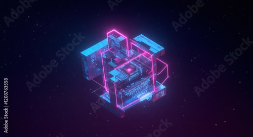 Futuristic Illustration with Holographic Elements and Neon Glow.
