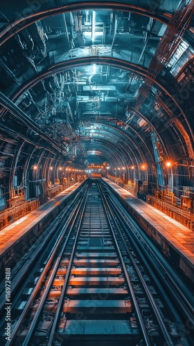 subway, tunnel, urban, transportation, railway, track, architecture, neon, futuristic, city, underground, steel, symmetry, perspective, light, empty, electric, modern, infrastructure, technology, destination, line, design, labyrinth, commuter, evening, travel, station, night, artistic, illuminated, industry, environment, scene, motion, city landscape, energy, high-coloured, ambience, transit, construction, minimalism, depth, structure, urbanism, visual, shadow