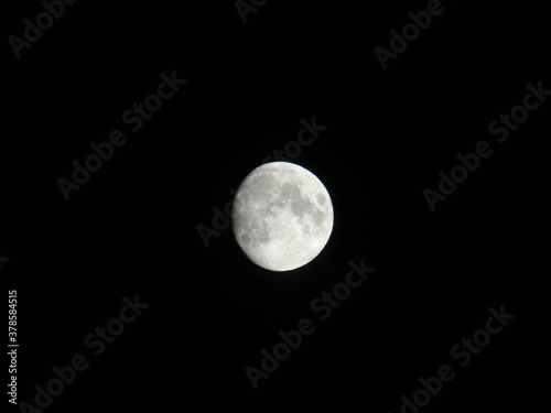 Genova, Italy - 07/07/2020: An amazing photography of the full moon over the city of Genova by night with a great clear and black sky in the background and some stars.