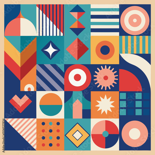 pattern, modern, geometric, vector, abstract, shape, background, poster, square, geometry, minimal, art, design, wallpaper, colours, circle, banner, simple, style, illustration, texture, scandinavian, flat, template, artistic, graphic, print, composition, cover, swiss, bright, creative, business, minimalist, form, geometrical, clean, wallpainting, bauhaus, retro, grid, textile, palette, tile, unique, artwork, branding, colourful, rectangle