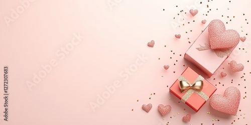 gift, heart, glistering, pink, background, love, valentine, present, bow, box, festive, celebration, romance, sweet, confetti, decorative, holiday, gold, shiny, arrangement, pastel, top, view, design, minimal, elegant, card, anniversary, beautiful, texture, sparkle, coral, peach, surface, tabletop, romantic, pattern, wallpaper, template, birthday, surprise, decoration, symbol, cardboard box