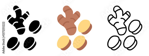 Ginger Icon, Collection Of Line, Glyph, Flat, Collection of line, Glyph, Flat Icon Set