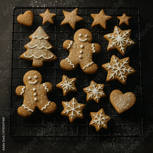 Gingerbread Cookies with Christmas Tree and Snowflake Shapes
