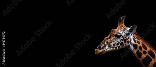 giraffe, darkness, silhouette, poised, enveloping, black, background, wildlife, elegant, majestic, graceful, imposing, enigmatic, mysterious, captivating, silent, vigilant, striking, serene, tall, slender, formidable, stature, nature, animal, neck, mammal, head, zoo, safari, giraffe, long, portrait, spot, brown, giraffe, camelopardalis, isolated, pattern, herbivore, face, profile, cute, spotted