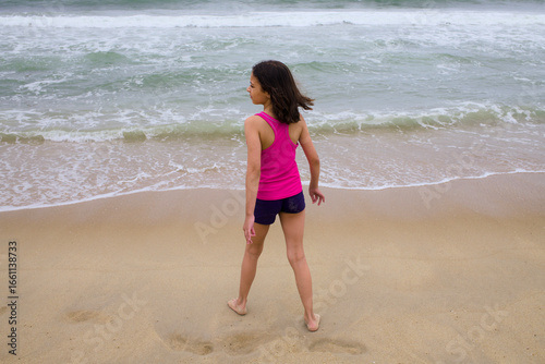 girl, children, female, young, mixed race, white, beach, shoreline, ocean, sea, sand, coast, surf, horizon, wave, barefoot beach, swimwear, active, outdoors, childhood, summer, lifestyle, candid, innocence, leisure, recreation, travel, carefree, holiday, nature, youth, vacation, freedom, maryland, us, preteen, preteen, one person, multiracial