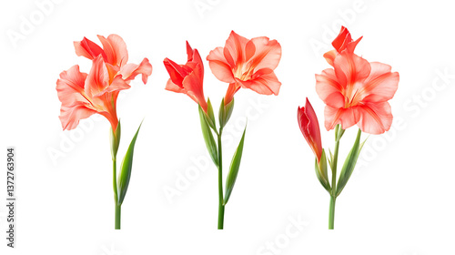Gladiolus Set in Three Different Poses on Transparent Background for Floral Illustrations, Garden Planning, or Decorative Art