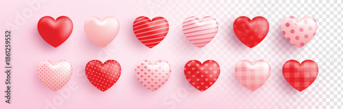 Glossy Valentine Hearts Pattern with Red and Pink Romantic Designs on Transparent Background