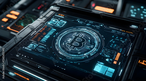 Glowing Bitcoin Token with Blockchain Visuals on Modern Interface