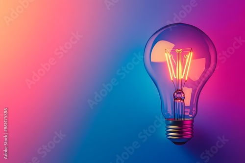 Glowing Light Bulb on a Blue and Pink Gradient Background